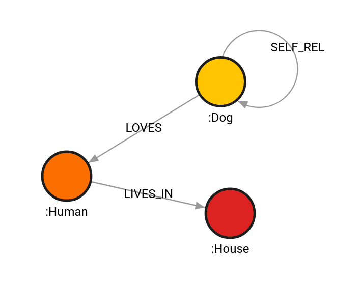 CREATE (d:Dog)-[s:SELF_REL]->(d), (d)-[l:LOVES]->(h:Human), (h)-[li:LIVES_IN]->(ho:House);
