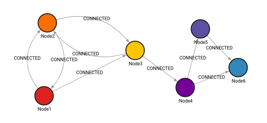 CREATE (n1)-[r1:CONNECTED]->(n2), (n2)-[r2:CONNECTED]->(n3), (n3)-[r3:CONNECTED]->(n4), (n4)-[r4:CONNECTED]->(n5), (n5)-[r5:CONNECTED]->(n6), (n1)-[r6:CONNECTED]->(n3), (n4)-[r7:CONNECTED]->(n6), (n2)-[r8:CONNECTED]->(n1), (n3)-[r9:CONNECTED]->(n2);