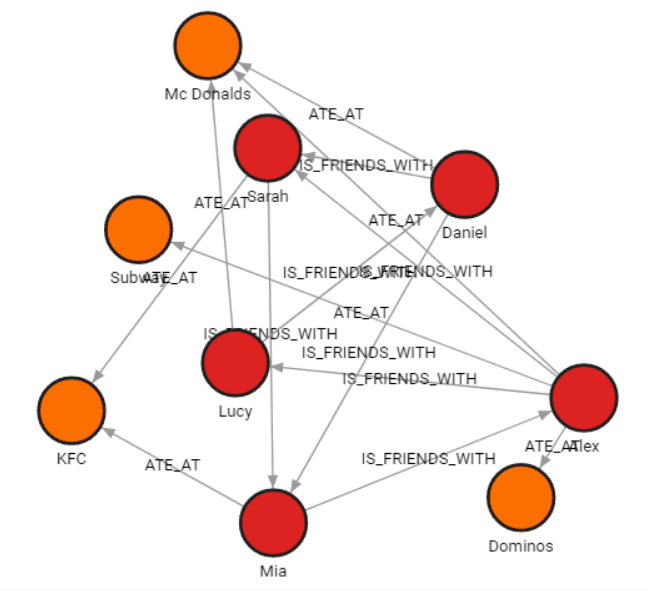label. From our data schema, relationship type ATE_AT connects nodes with